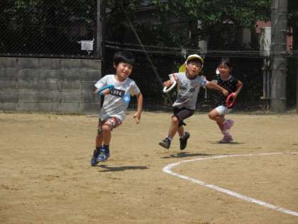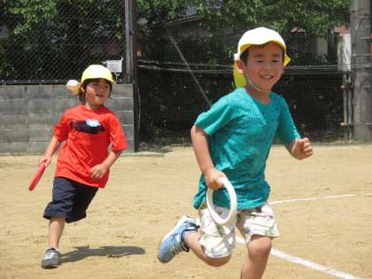 今日は25m走の測定をしたあと、年長になって初めてのリレーをしました。3チームに分かれ並び方や待ち方、バトンの渡し方を聞いたあと、さっそくよーいドン!みんな自分の順番が回ってくるのをドキドキワクワクしながら待ち、バトンをもらうとみんな思いきり腕を振り、歯を食いしばって一生懸命走っていました。「すごく楽しかった!」「またリレーしたい」と子供たちはとても楽しかったようです。運動会に向けてこれからもたくさん体を動かし、体力をつけていきたいと思います。