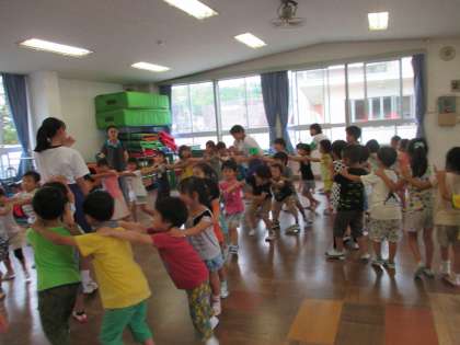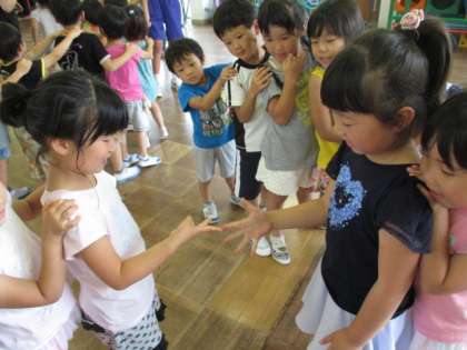 降園するとき、「ピカピカ泥団子作って楽しかったよ」「プールで遊んでくれてありがとう」とハイタッチや握手をし、別れを惜しんでいました。