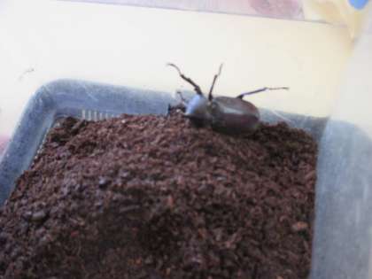 4歳児ひまわり組でお世話していたカブトムシが成虫になりました。