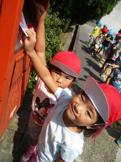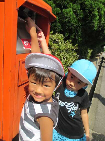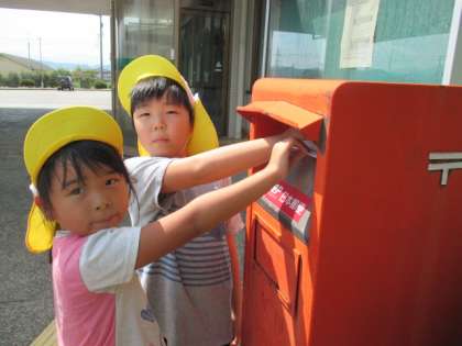 「大好きなおじいちゃんやおばあちゃんに運動会に来てもらいたい」と描いた絵ハガキを、ポストまで入れに行きました。