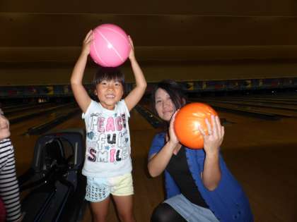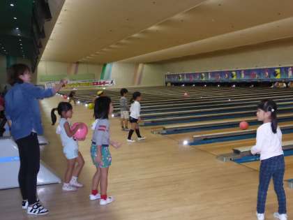 今日は富山地鉄ゴールデンボウルへ出かけ、年長組親子でボウリングを楽しんできました。大きなボウルを重たそうに持ち、みんなの声援を受けて一生懸命投げる子供たち。ピンが倒れる度に大きな歓声があがっていました。お母さんやお父さんたちもスピード感があり、コントロールも良く、ストライクやスペアが続出!「久しぶりにきた〜」「ストライクだ!やったー!」と、大喜びでした。「楽しかった〜!」「明日もボウリング行きたい!」と子供たちはまだまだ物足りなかった様子。またお家の方と一緒に楽しんできてくださいね!