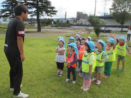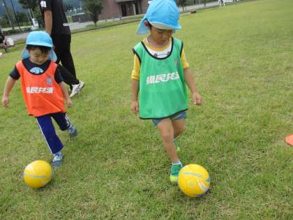 「幼稚園でもサッカーして遊びたいな」と子供たち。また、サッカーをして遊びましょうね。