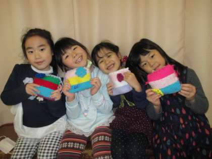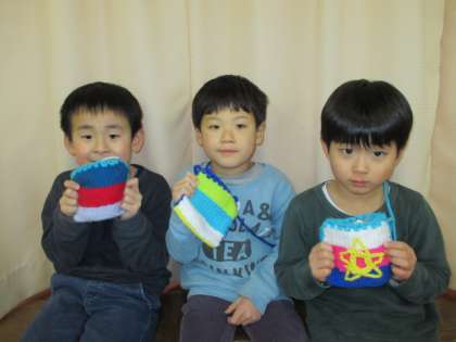 うさぎ組の子供たちは、3学期になってから順番に編み物をしてきました。ジグザグに編み目を飛ばさないように気をつけながら少しずつ進めてきました。色を2色にしてシマシマ模様にしたり、好きな色を順番につなげていったりして自分だけのポシェットが完成しました。子供たちは、まだまだ編み物をしたいと、マフラー、二個目のポシェットを製作中です。