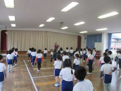 音楽に合わせてスキップやギャロップをしたり、踊ったりして、みんなで楽しく体を動かしました。
