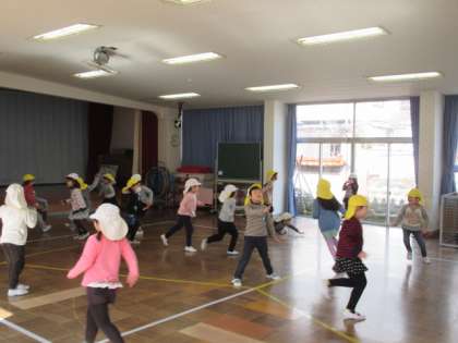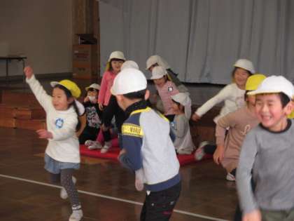 昨日から始まったお楽しみ会。今日は氷鬼や色鬼など、鬼ごっこを楽しみました。みんなでルールを確認したり新しいルールも作ったりしました、鬼は作戦を練って必死に追いかけ、逃げるほうも思いっきり走って逃げていました。「ネコとネズミ」のゲームでは、ネコチームとネズミチームに分かれ、「ねねね…」に続く言葉をしっかりと聞き、「ネズミ」と言われたらネズミはネコを追いかけます。どちらの言葉が出るか、子供たちは真剣な表情で聞き分け、歓声をあげて楽しんでいました。よく笑い、よく走って元気に過ごした子供たち。来週もお楽しみ会を楽しみにしています。