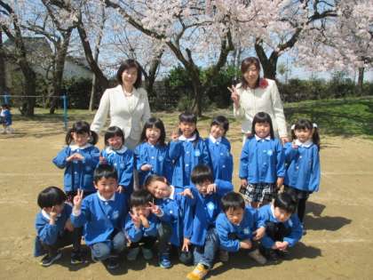 うさぎ組の子供たちは、昨日の入園式の後、小学校のグラウンドに咲いている桜を見てきました。「きれいだね」「風で飛ばされないといいね」と子供たち同士で桜を見ながら話をしてました。桜の木の下で記念撮影もしてきました。
