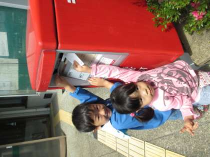7月7日の七夕の集いに向けて、ご招待のはがきにおじいちゃんとおばあちゃんの絵を描きました。今日はそのはがきをポストに投函しに出かけました。「おばあちゃん、おじいちゃんきてね」と子供たちは背伸びをしながら、大事そうにポストに入れていました。当日は歌を歌ったり七夕飾りを作ったりして、楽しく過ごしたいと思います。今から楽しみにしている子供たちです。