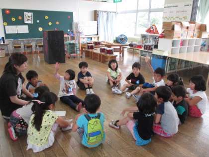 先日から小学校のお兄さんたちが授業でリレーをしているのを見てきた子供たちは「自分たちもリレーをして遊びたい!」そこで、土曜日の親子活動でお家の方と一緒に楽しもうということになりました。事前のお知らせにはない競技ですが、当日よろしくお願いします。今日は、リレーで遊んだ後、ミニ運動会で走る順番を相談しました。子供たちは「お家の方に勝ぞ!」と、気合が入っています。