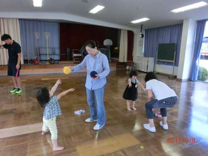 2学期最初の親子サークルがありました。講師に小川先生をお迎えし、乳幼児の運動の仕方についてわかりやすくお話を聞くことができました。カラフルな毛糸のボールでいろいろな遊びを楽しみました。