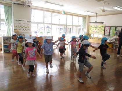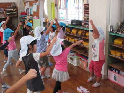 うさぎ組の子供たちは、運動会に開会式や閉会式、競技中に係の仕事に挑戦します。そこで、保育室でもうさぎ組の子供たちと一緒に言葉を言ったり、体操をしたりして友達と協力して頑張っています。自分たちで決めた係を責任もってしようという子供たちの姿が見られます。当日は、係の仕事を頑張っている子供たちにも応援よろしくお願いします。