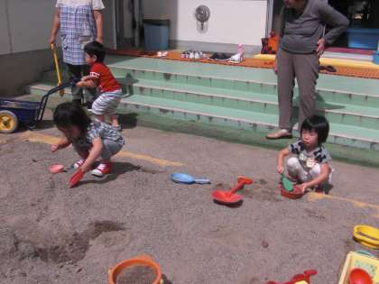 親子サークルがありました。今日はジュースやさん遊びです。ペットボトルに絵の具を入れて、シャカシャカすると、あっという間においしいジュースの出来上がりに大喜びの子供たちです。砂場遊びもして満足した子供たちでした。来年度の新入園児募集が始まりました。入園を希望される方は幼稚園に問い合わせてください。☎(076)468−2050