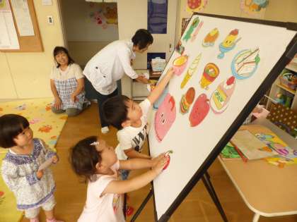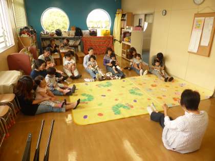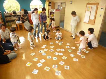 親子サークルがありました。講師に上野典子先生を招きました。お家の人の膝にのせてもらい、リズム遊びをしたり、初めて見るパネルシアターを見ているうちにお手伝いをしたりしてくれる子もいました。カードゲームで盛り上がり、お家の人と楽しく遊ぶことができました。今日は、大勢のちびっこたちが集まり、にぎやかな日となりました。来年度の新入園児募集が始まりました。問い合わせは、大沢野幼稚園にどうぞ!お待ちしております。☎468−2050