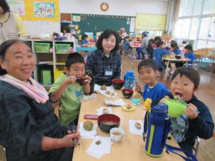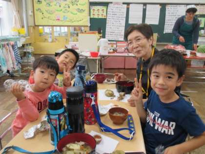 さつま汁とてもおいしかったね!地域の方から、スイカのプレゼントもいただきました。この時期に食べるスイカもおいしく、子供たちは何度もおかわりをして食べていました。