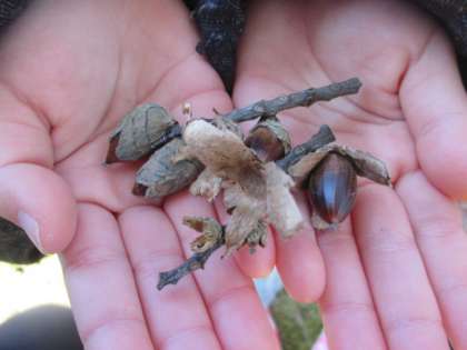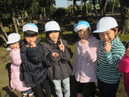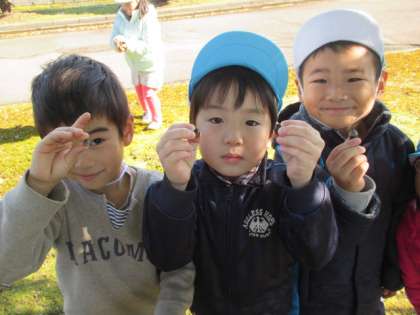 昨日は、天気がよかったので近くの公園に行ってどんぐり探しをしてきました。「このどんぐり見たことない」「ここにもどんぐりあるよ」と、友達と一緒にたくさんのどんぐりを拾ってきました。3種類のどんぐりを発見した子供は、幼稚園に戻ってから図鑑を見て名前を調べました。「しがらし」「すだじい」「まてばしい」というどんぐりでした。図鑑を見て「こんなどんぐりもあるんだね」と、楽しそうに調べていました。
