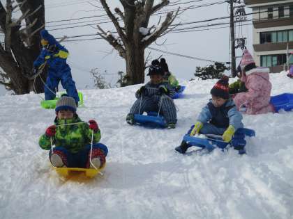 ソリ遊び楽しい!(ひまわり組・たんぽぽ組)