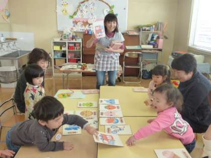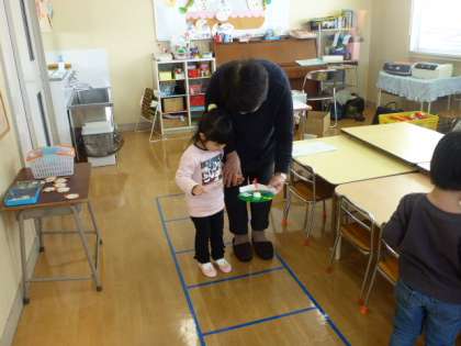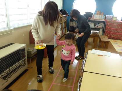 年明け初めての親子サークルに、かわいい子供たちが遊びに来てくれました。早く遊びたい様子の子供たちは、久しぶりに幼稚園に来てうれしそうです。絵カード遊び、福笑い等正月遊びを楽しみました。手づくりルーレットでお家の人とすごろく遊びで体を動かして遊びました。 大沢野幼稚園では、新入園児募集中です。お問い合わせは、大沢野幼稚園468−2050までおかけください。お待ちしております。