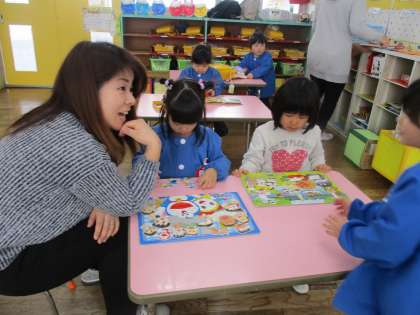 カードゲームを一緒にしたり、回すと渦になるコマを見せたりして、たくさんアピールしていましたね。いろいろなわらべうた遊びも楽しかったですね。