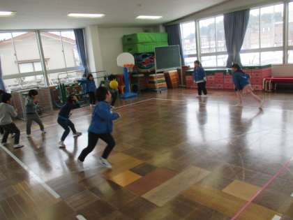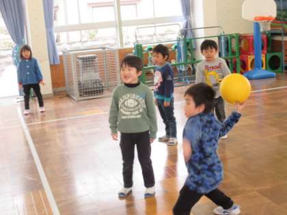 今日は、ドッジボールをして遊びました。子供たちは、ボールを遠くにそして速く投げられるようになりました。ボールのパスも上手になり、友達からもらったボールをキャッチしてすぐ投げて当てる姿もみられるようになってきました。修了まであと1か月です。ドッジボールをたくさんして子供たちと楽しみたいと思います。