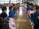 もうすぐ3月です。いよいよ年長組は小学校へ、年中組は幼稚園で一番大きい年長組になります。そこで年長組から年中組へ当番の引継ぎが行われました。年長さんからは「当番の仕方」を教えてもらい、一緒に当番活動を行いました。年中組は年長組の言われることを「なるほど」と真剣に聞いて、一所懸命当番の仕方を習っていました。