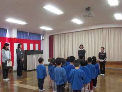 春休みも終わり、子供たちが元気に登園してきました。今日から新年度がスタート。着任式では、新しい副園長先生と用務員さんを迎えました。始業式では園長先生から新しい色の名札を受け取り、とても嬉しそうな子供たちでした。9日から新しいお友達も入園してきます。今から心待ちにしている子供たち!今年度も楽しい園生活を送れるよう、職員一同努めていきたいと思います。どうぞよろしくお願いいたします。