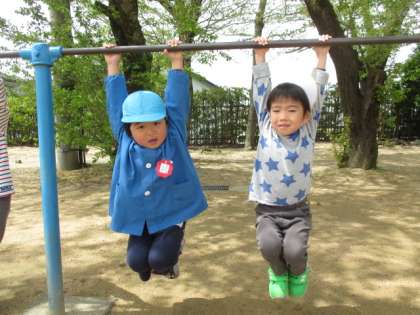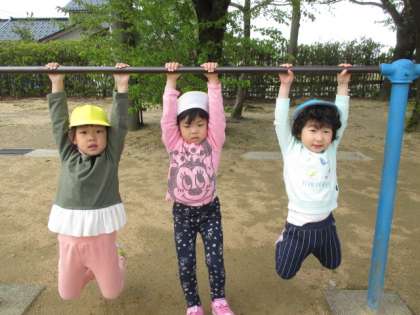 体操教室の後、散歩に行ってきました。今日は、小学校のグラウンドをまわって鉄棒で遊んできました。鉄棒ではみんなでぶらさがりの競争をして楽しんできました!
