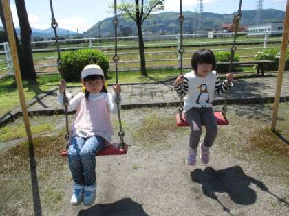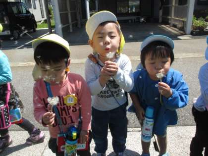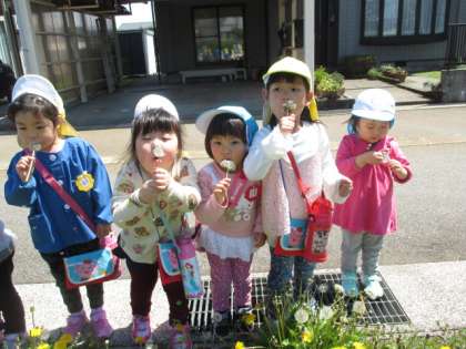 昨日は、幼稚園の近くの公園まで散歩に行ってきました。4歳のお友達が「ぼくの家の近くの公園にブランコがあるよ」と、教えてくれたので、みんな一緒に行ってきました。歩いているとたくさんのタンポポを発見!みんなで「ふーっ」と綿毛を飛ばして遊んだり、散歩中の犬に声をかけたりしながら公園まで行きました。公園では、遊具で遊んだり、図鑑を見て草花を見たりして楽しんできました。
