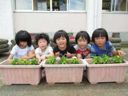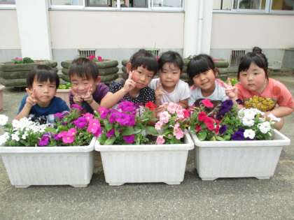 先月、お家の方と一緒に植えたお花がきれいに咲いています。毎朝、花の水やりありがとうございます。