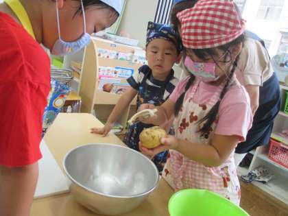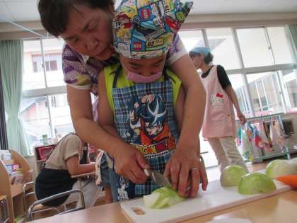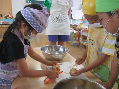 玉ねぎを切ると目が痛〜い。ニンジン硬〜い。でも、おいしいカレーを作ろうと頑張りました。