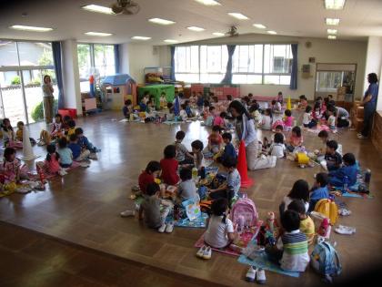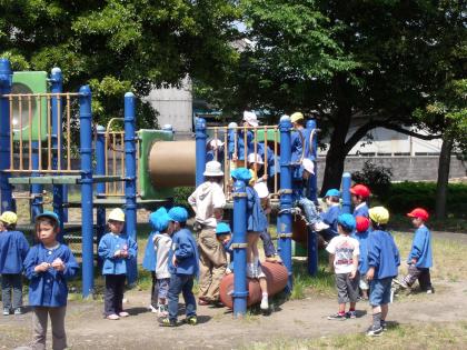 青空に恵まれ元気よくピクニックにでかけました。公園ではアスレチックやシーソーなどを、なかよしグループでまわりました。お母さん達に作ってもらったお弁当もおいしかったね。