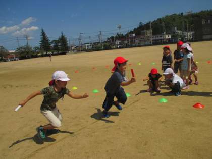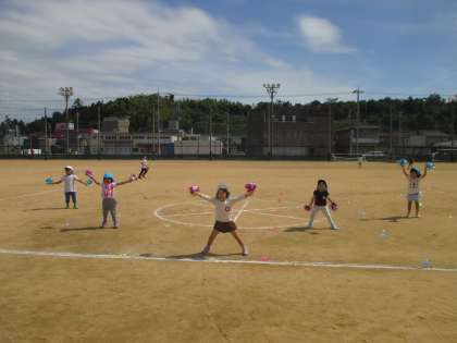 9月22日の運動会に向けて、毎日元気に体を動かしている子供たち!今日もみんなで運動会ごっこを楽しみました。うさぎぐみは鼓隊やリレー、たんぽぽぐみやひまわりぐみは、ポンポンやフラッグをもって、張り切って踊っています。みんなで赤白に分かれて玉入れも何度も楽しんでいます!