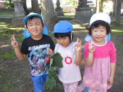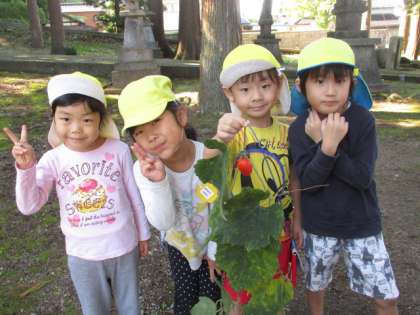 「先生赤い実あるよ」と、からすうりを発見しました。