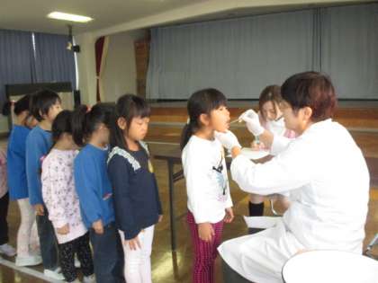 今年度2回目の歯科検診をしました。「朝、歯磨きしてきたよ!」「夜、ママに仕上げ磨きしてもらってるよ!」と子供たち。これからも歯磨きをしっかりして、歯を大切にしていきましょうね!
