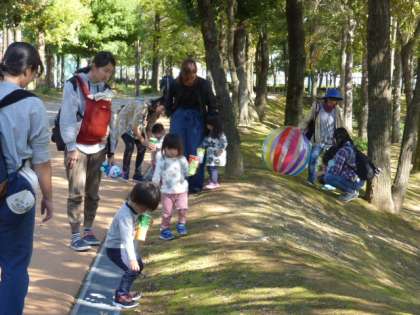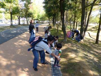 秋晴れの中、親子サークルのちびっこたちは、運動公園へお散歩に出かけてきました。広い公園でドングリを拾ったり、おやつを食べたりとのんびり過ごしてきました。大きなビーチボールでお母さんと一緒にゲーム遊びで盛り上がりました。来週は、幼稚園で遊びますのでお待ちしております。