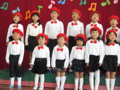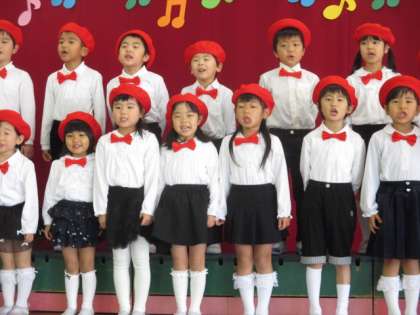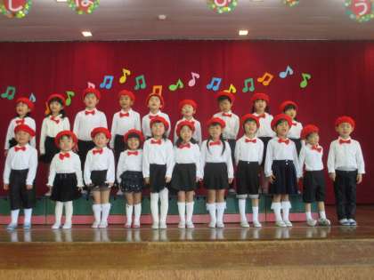 まずは、全体合唱です。大きな声で「さんぽ」「サンタクロースはどこだ」を歌いました。