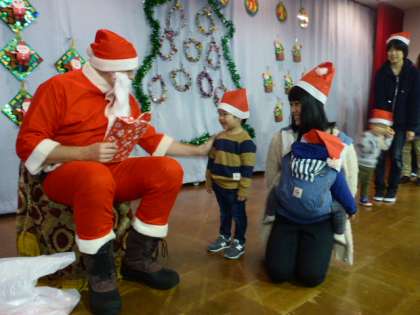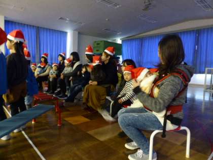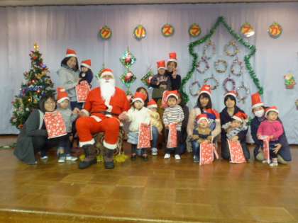 クリスマスお楽しみ会に参加しました。幼稚園のお友達と歌を歌ったり、フォークダンスを踊ったりしました。サンタクロースさんからプレゼントをもらい大満足な子供たちでした。今年も先生やお母さんとサークルでたくさん遊びましたね。来年は、1月11日(金)からスタートです。遊びに来ださいね、お待ちしております。よいお年をお迎えください。