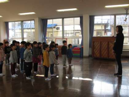 今日は2学期最後の日となりました。みんなで2学期の行事や楽しかった遊びを振り返り、そのあと冬休みのお約束をしました。「早寝早起き朝ごはん」「挨拶をしましょう」「おうちの人のお手伝いをしましょう」の3つのお約束を守って、元気に過ごしてくださいね。3学期、またみんなに会えるのを楽しみにしています。保護者の皆様には、今年もたくさんご協力いただき、ありがとうございました。