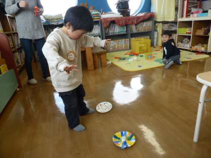 お正月明け初めての親子サークルがあまりました。お正月の意味やそれぞれの家庭での楽しかったことをみんなで話しました。お母さんとこまをつくったり、遊んだりして楽しみました。次回は、18日(金)です。