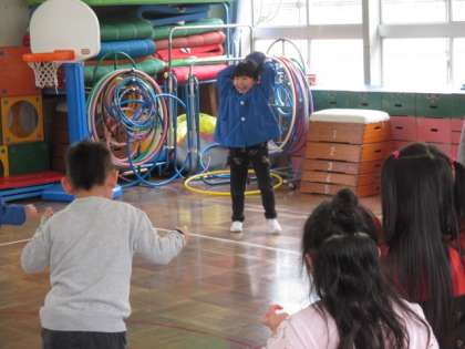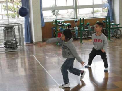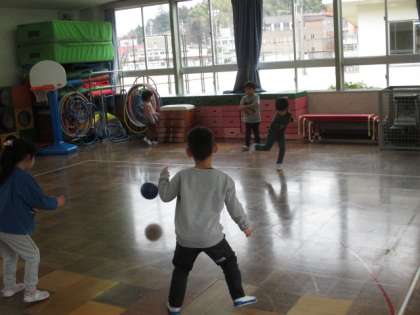 今日は、3・4歳児の子供たちでドッジボールをして遊びました。子供たちは、ボールを遠くに投げたり、逃げたりすることがとても上手になりました。ボールを投げるスピードも速くなっています。「ドッジボール楽しかったね」「次は、当たらないように頑張ろう」と、友達同士で話をする姿が見られました。
