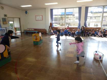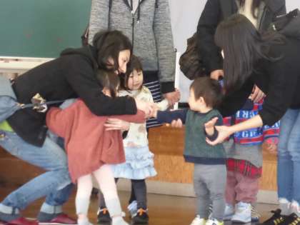 もうすぐ、ひな祭りがやってきますね。ステージには、幼稚園の子供たちがつくったかわいいひな人形が勢ぞろいしている中、ひな祭り会に参加させてもらいました。ひな祭りの紙芝居を見たり、歌を歌ったりしました。子供たちは、ぼんぼりにきれいなお花をつけるゲームもしてうれしそうでした。来週7日(木)は、今年度最後のサークルです。お別れ会をしますので、ぜひ、遊びに来てください。お待ちしております。