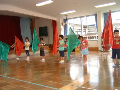 2学期が始まりました。9月26日は大沢野幼稚園の運動会です。子ども達は、鼓笛隊やかけっこ、玉入れなどの練習をしています。玉入れは、各クラスで行うこともありますが、異年齢のクラスの子ども達と一緒に楽しんでいます。大きいお兄さん、お姉さんの姿を見て、「僕もやってみようと」と意欲的に取り組む姿が見られます。