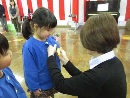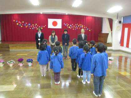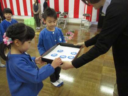 着任式では、新しい園長先生や担任の先生、用務員さんを迎えました。始業式では、園長先生に新しい名札をつけてもらい、とても嬉しそうでした。子供たちが楽しい園生活を送ることができるよう、職員一同力を合わせて努力してまいります。保護者の皆様のご支援とご協力をよろしくお願いします。