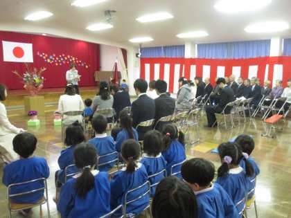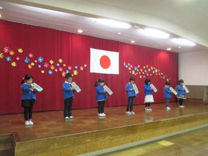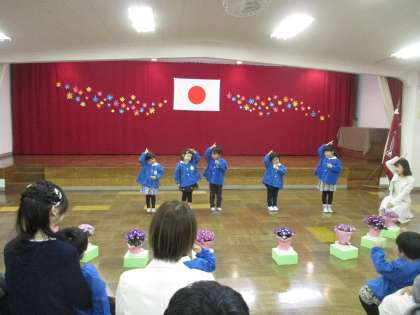お兄さん、お姉さん達は、小さい友達を楽しみに待っていましたよ。明日から、仲良く遊びましょうね。式後の歓迎会では、4歳児が、アンパンマンの手遊びとチューリップのうた、5歳児が、鍵盤ハーモニカを披露しました。