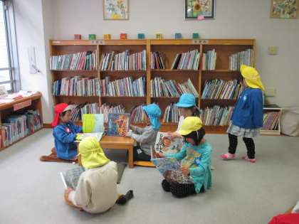 大沢野図書館に行ってきました。図書館司書の方が大きな絵本や紙芝居の読み聞かせやペープサート、手遊びなど楽しいことをたくさんしてくださいました。図書館にあるたくさんの本も見てきました。