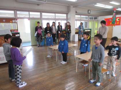 お母さんやお父さんと一緒に元気に登園してきた子供たち。朝の会では少し緊張しながらも名前を呼ばれると大きな声で返事をしていました。