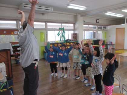 うさぎ組初めてのハロータイムがありました。テリー・ストーン先生が「ハロー」と部屋に入ってくると「...」圧倒された様子の子供たちでした。初めて英会話を経験する子が多く、ドキドキしたようでした。終わった後は「楽しかったー!」とニッコリの子供たちでした。