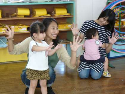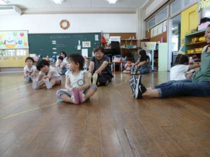 今日のサークルにはたんぽぽ組(3歳児)も参加させていただきました。石川先生の元気な声に合わせて、サークルのお友達もたんぽぽ組さんもとても楽しそうでした。