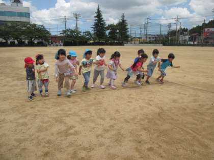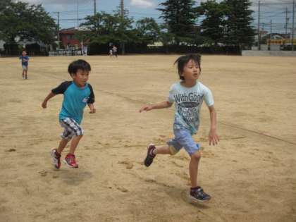 小学校が振休でグラウンドが使い放題!ということでみんなでマラソン大会をしました。力いっぱいグラウンド一周走り終えると「ドキドキしてる!」と自分の胸に手をあてて確認していました。「まだ走れる!」と元気にもう一周走る友達もいました。
