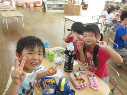 「いただきます早くしたい〜!」と食べることを楽しみにしていた子供たち。