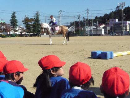 ふたば会主催の馬とあそぼうを行いました。大きな馬が歩いている様子をみて「かわいいね」と子ども達から声が聞こえてきました。