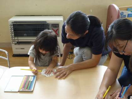 今回は4歳児も一緒に参加し、楽しい製作をしながら食事の大切さを聞き「給食いっぱい食べます!」と返事をしてくれました。